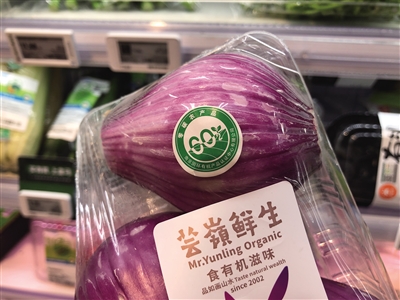盒马零碳有机蔬菜包装上贴有第三方认证机构的认证标签。 新京报记者 王子扬 摄